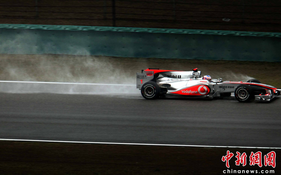 4月18日下午,2010國(guó)際汽聯(lián)F1世界錦標(biāo)賽上海站在上海國(guó)際賽車場(chǎng)舉行正式比賽,邁凱輪車隊(duì)的英國(guó)車手巴頓在雨中獲得冠軍、隊(duì)友、英國(guó)車手漢密爾頓獲得亞軍,梅賽德斯GP車隊(duì)的德國(guó)車手羅斯伯格獲得季軍。圖為漢密爾頓。中新社記者 任晨鳴 攝