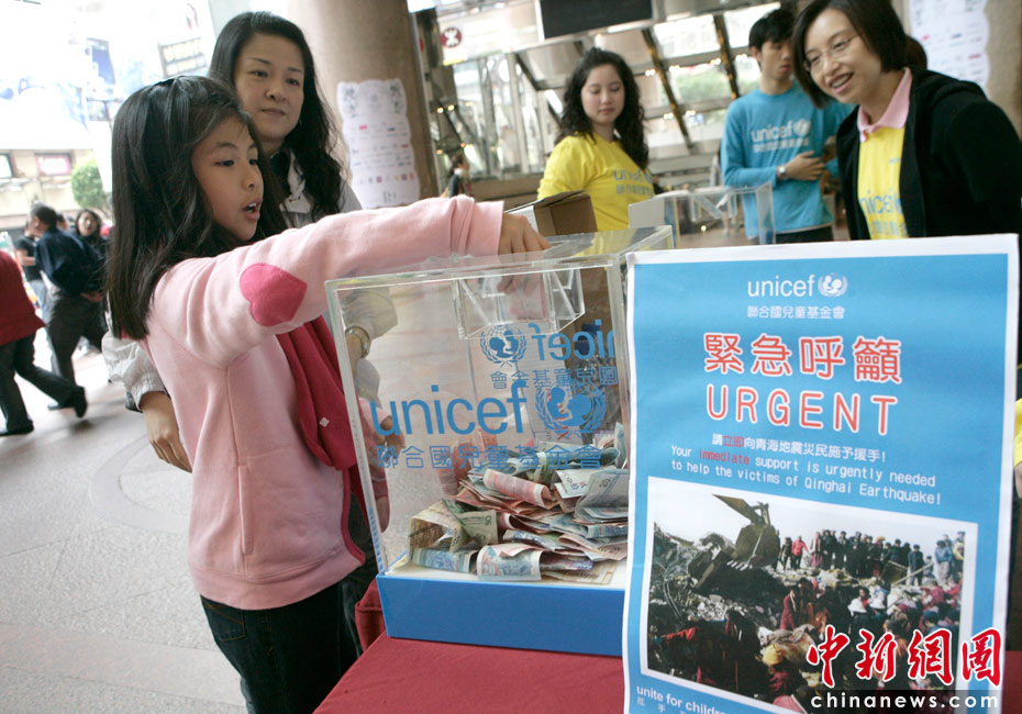 4月18日,香港市民在時代廣場募捐。4月14日,青海省玉樹藏族自治州玉樹縣發(fā)生7.1級地震,給當(dāng)?shù)厝嗣袢罕娚敭a(chǎn)造成嚴(yán)重?fù)p失。災(zāi)情牽動廣大香港同胞災(zāi)情牽動廣大香港同胞的心,連日來,香港社會各界團(tuán)體及市民紛紛為地震災(zāi)區(qū)捐款。中新社發(fā) 張勤 攝