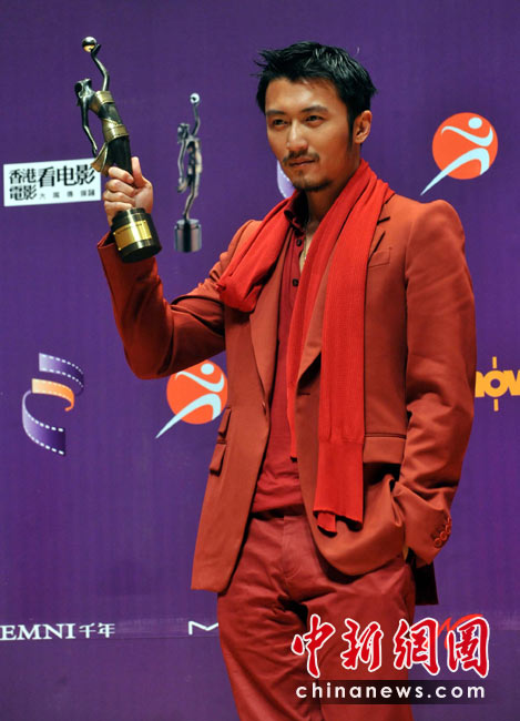 4月18日晚,“第二十九屆香港電影金像獎(jiǎng)”頒獎(jiǎng)典禮在香港文化中心大劇院隆重舉行,藝人謝霆鋒憑演出電影“十月圍城”奪得最佳男配角獎(jiǎng)項(xiàng)。中新社發(fā) 鄧慶樂(lè) 攝