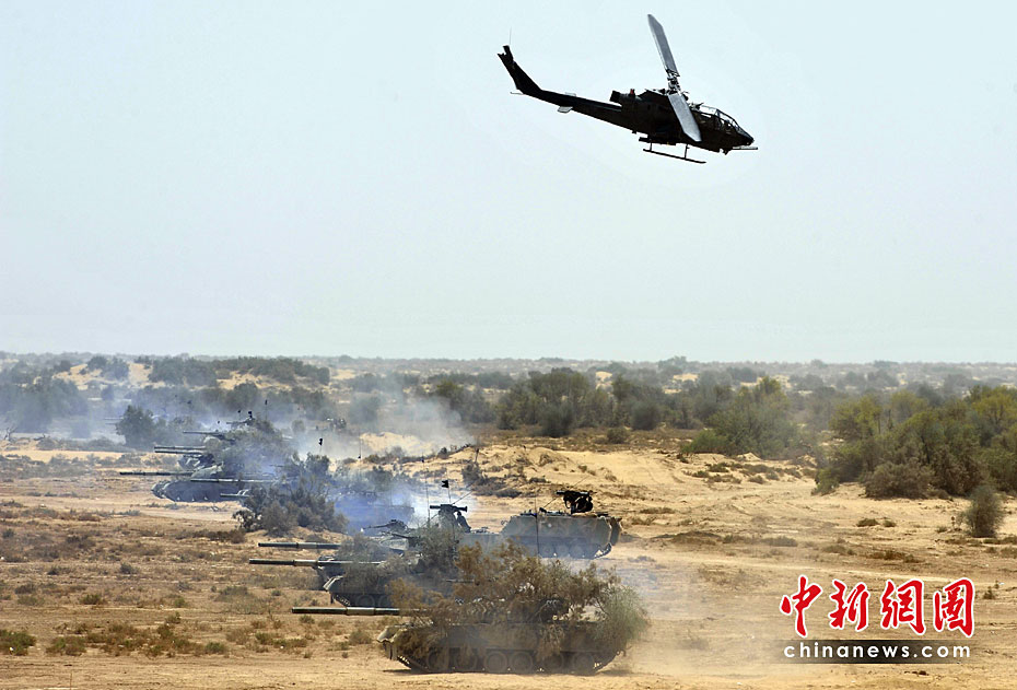 巴基斯坦軍隊(duì)4月18日出動(dòng)戰(zhàn)機(jī)、坦克和重型火炮,在靠近印度邊界的東部沙漠地區(qū)舉行“新決心—3”軍事演習(xí)。圖片來(lái)源:中國(guó)新聞網(wǎng)