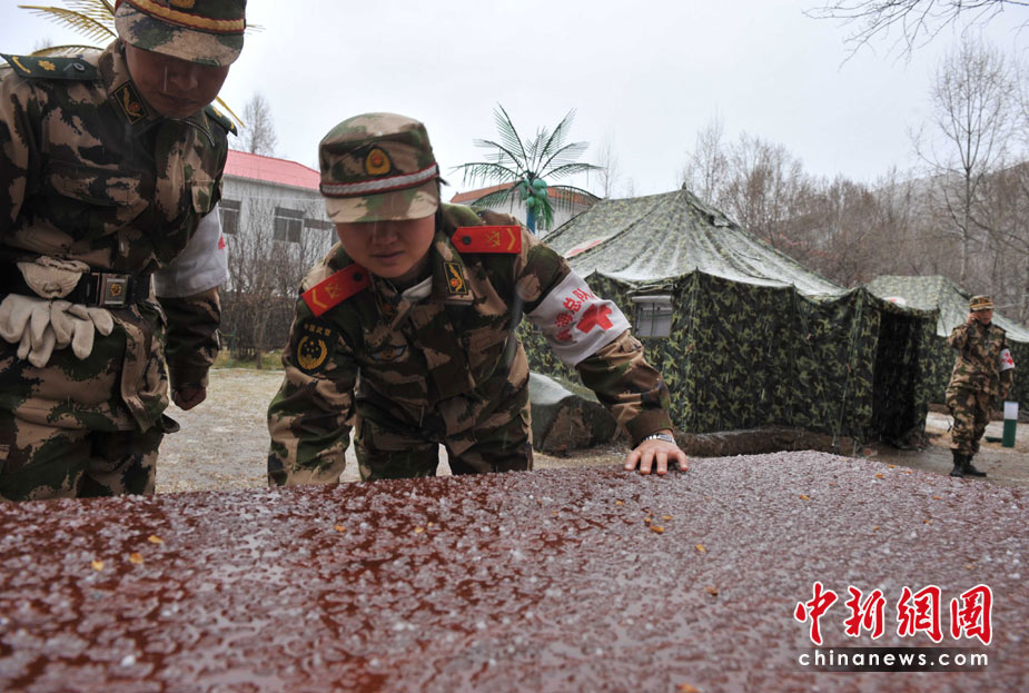 4月20日12時(shí)許,玉樹地震災(zāi)區(qū)突然雷雹交加,給青海武警總隊(duì)醫(yī)療救護(hù)隊(duì)治療抗震救災(zāi)傷員造成困難。中新社發(fā) 賈國(guó)榮 攝