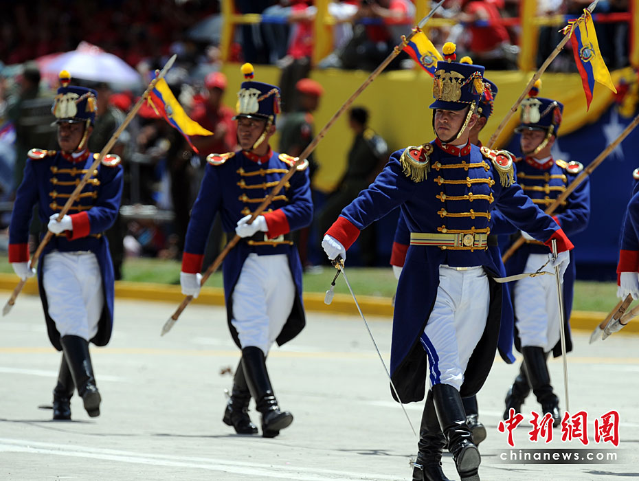 委內(nèi)瑞拉首都加拉加斯19日舉行盛大游行活動,紀念反殖民統(tǒng)治爭取獨立的斗爭開始200周年。圖片來源:中國新聞網(wǎng)