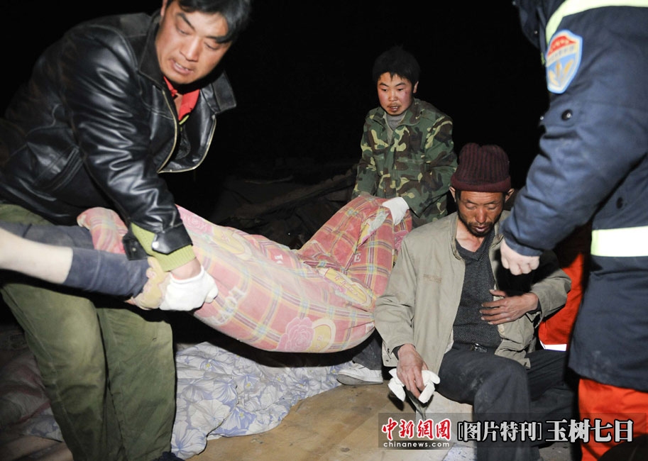 玉樹縣的民眾在中國國際救援隊隊員的幫助下連夜展開救援。中新社發(fā) 廖攀 攝