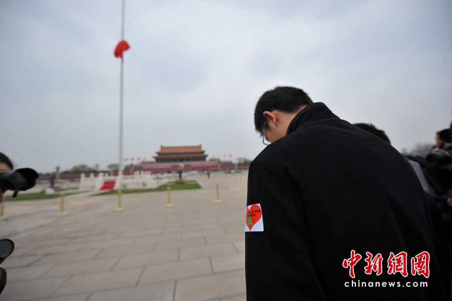4月21日,為表達(dá)全國(guó)各族人民對(duì)青海玉樹地震遇難同胞的深切哀悼,中國(guó)國(guó)務(wù)院決定,舉行全國(guó)哀悼活動(dòng),全國(guó)和駐外使領(lǐng)館下半旗志哀,停止公共娛樂(lè)活動(dòng)。圖為北京天安門廣場(chǎng)上哀悼遇難者的民眾。中新網(wǎng)記者 金碩 攝