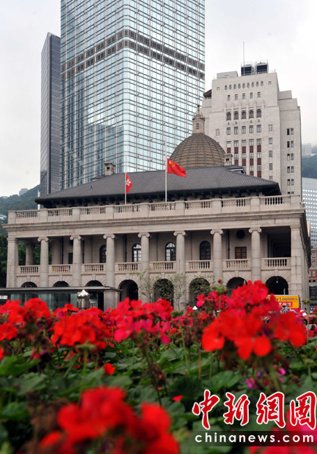 4月21日,全國哀悼青海玉樹地震遇難同胞,香港特別行政區(qū)所有政府機(jī)構(gòu)均下半旗致哀。圖為香港特別行政區(qū)立法會大樓下半旗向地震遇難同胞哀悼。中新社發(fā) 鄧慶樂 攝