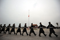 天安門廣場下半旗志哀