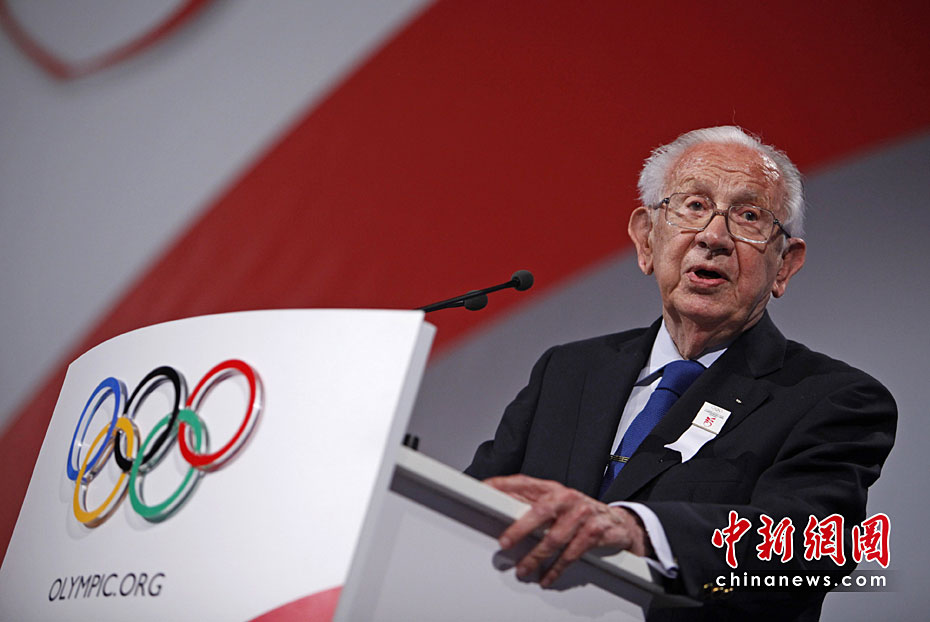 圖為2009年10月2日,薩馬蘭奇在哥本哈根舉行的第121屆國際奧委會會議上講話。