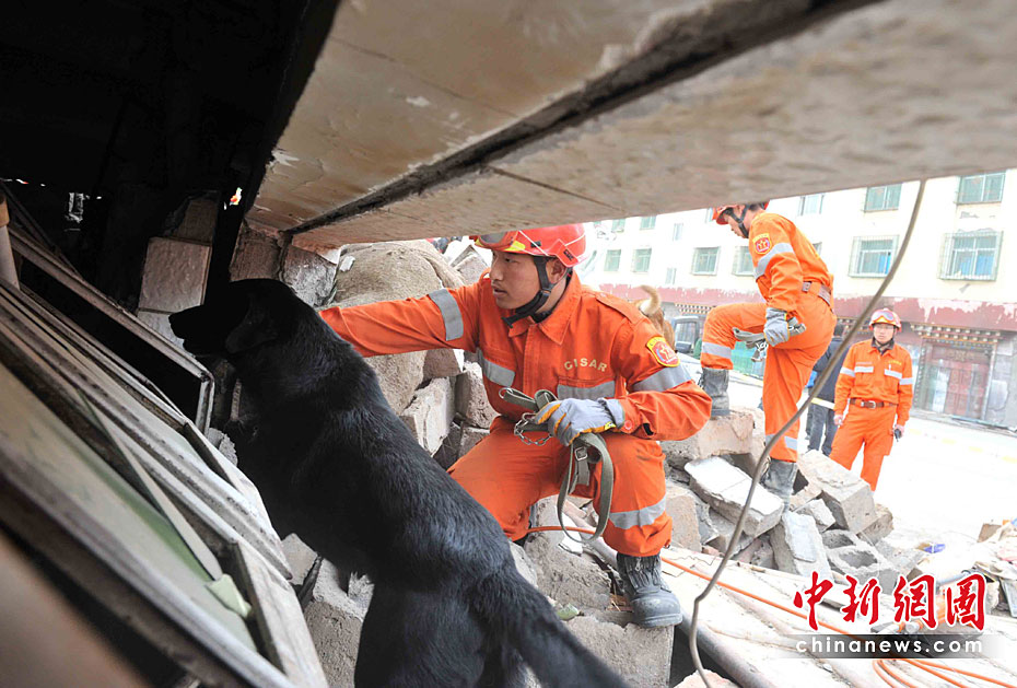 名貴的黑貝犬是中國國家救援隊(duì)趕赴青海玉樹地震災(zāi)區(qū)6只搜救犬隊(duì)成員之一,身價(jià)近百萬元人民幣。4月21日清晨八時(shí)許,它在救援隊(duì)員的帶領(lǐng)下,到玉樹地震災(zāi)區(qū)中心商業(yè)街廢墟里,四處奔波,盡職盡力尋找生命跡象。10時(shí)后,他和救援隊(duì)員都出現(xiàn)高原反應(yīng),暫時(shí)休整,準(zhǔn)備再戰(zhàn)。賈國榮 攝