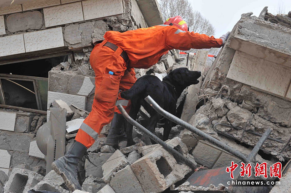 搜救犬黑貝玉樹地震廢墟上的一個(gè)清晨