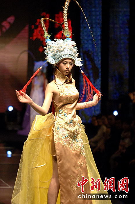 4月20日晚,首屆海西國際時(shí)裝周在福建石獅閉幕,本屆時(shí)裝周吸引了來自海峽兩岸的紡織服裝界企業(yè)家和知名服裝設(shè)計(jì)師。期間舉辦了12場時(shí)裝品牌和設(shè)計(jì)師作品動(dòng)態(tài)發(fā)布會(huì)。圖為模特展示古今潮流結(jié)合的服裝。王東明 攝