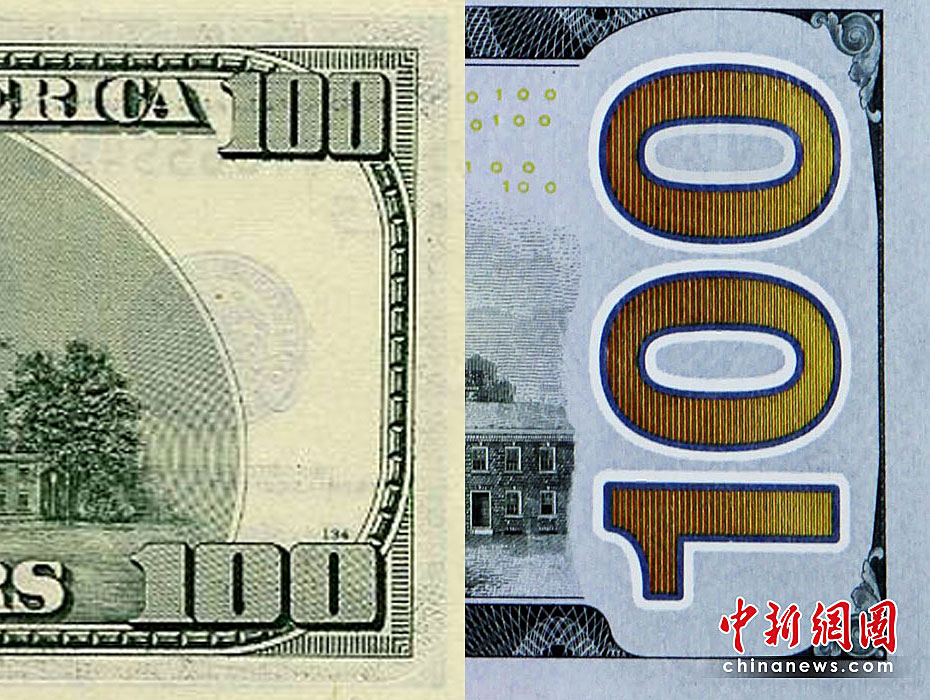 圖為新(右)舊款百元美鈔對比。