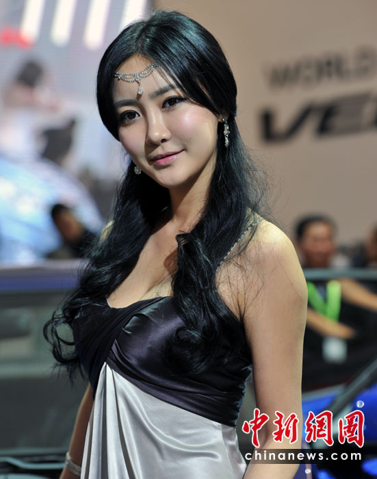 “第十一屆北京國際車展”是名車新品搶先亮相的舞臺,也成了車模們爭奇斗艷的場所,參觀者在車展中可以享受兩道視覺大餐。中新網(wǎng)記者 金碩 攝