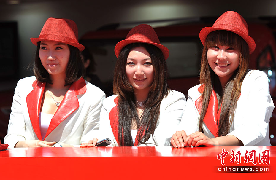 “第十一屆北京國(guó)際車展”場(chǎng)內(nèi)車模爭(zhēng)奇斗艷,場(chǎng)外美女不甘示弱。中新網(wǎng)記者 金碩 攝