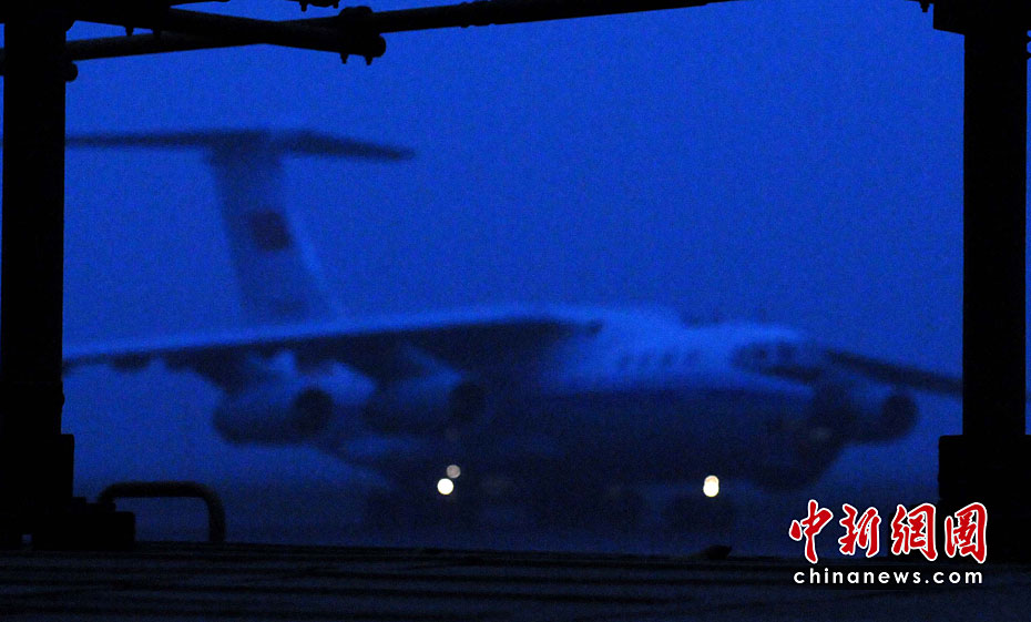 4月18日清晨6時(shí) (賈國(guó)榮)天蒙蒙亮,中新社和中新網(wǎng)從北京增援采訪青海玉樹7.1級(jí)強(qiáng)烈地震的記者組,趕赴到成都某空軍機(jī)場(chǎng),搭乘中國(guó)空軍伊爾-76重型運(yùn)輸機(jī)037機(jī)群呼嘯起飛。