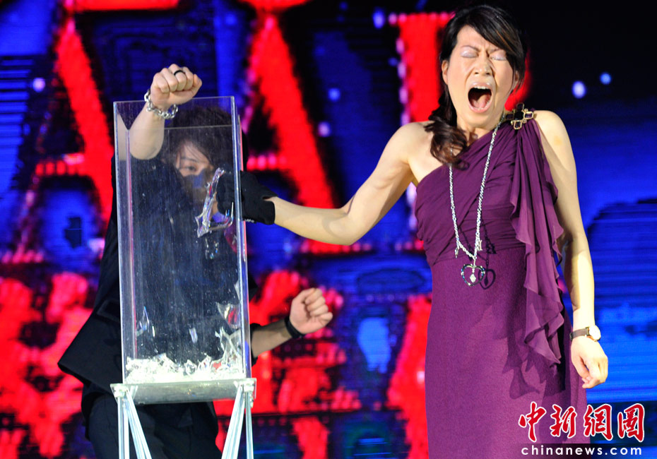 4月25日,由《時(shí)尚芭莎》雜志社主辦的第8屆“BAZAAR明星慈善夜”活動(dòng)在上海舉行,圖為劉謙為現(xiàn)場(chǎng)嘉賓表演精彩炫目的魔術(shù)。 中新網(wǎng)記者 金碩 攝