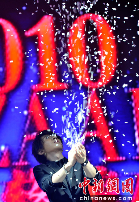 4月25日,由《時(shí)尚芭莎》雜志社主辦的第8屆“BAZAAR明星慈善夜”活動(dòng)在上海舉行,圖為劉謙為現(xiàn)場(chǎng)嘉賓表演精彩炫目的魔術(shù)。 中新網(wǎng)記者 金碩 攝