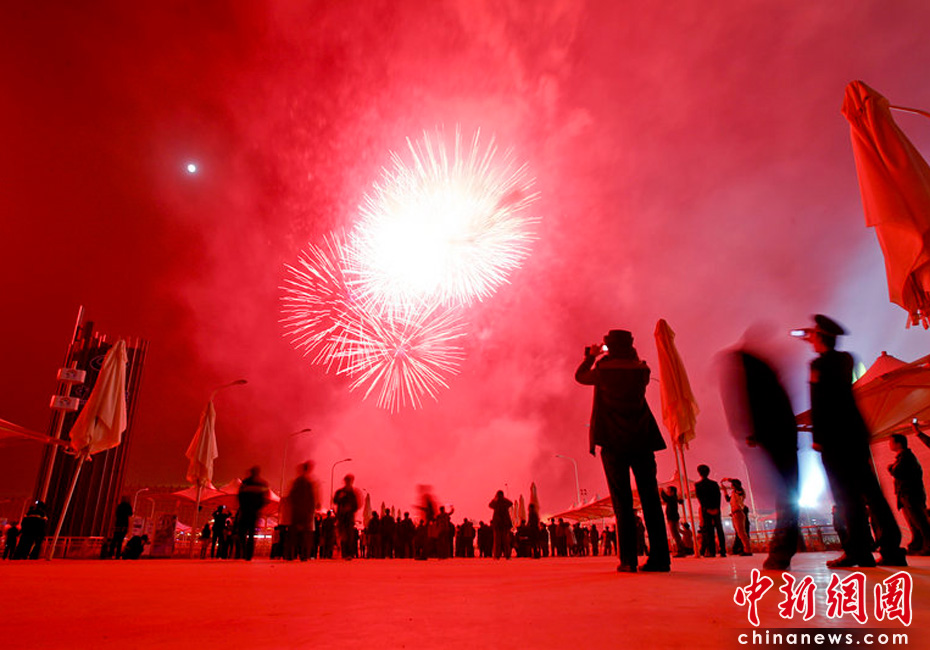 4月27日,上海浦西園區(qū)世博煙花預(yù)演。張棟/CFP