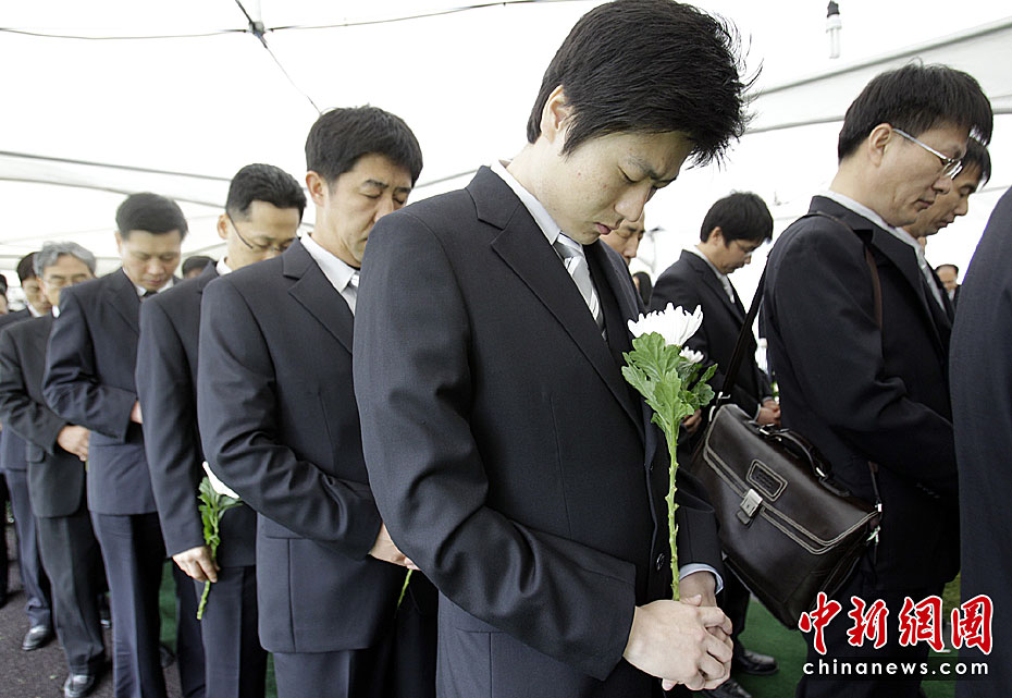 4月29日上午,韓國“天安”艦遇難官兵遺體告別儀式在平澤海軍第二艦隊司令部安保公園舉行。韓國總統(tǒng)李明博攜夫人參加告別儀式。圖片來源:中國新聞網(wǎng)