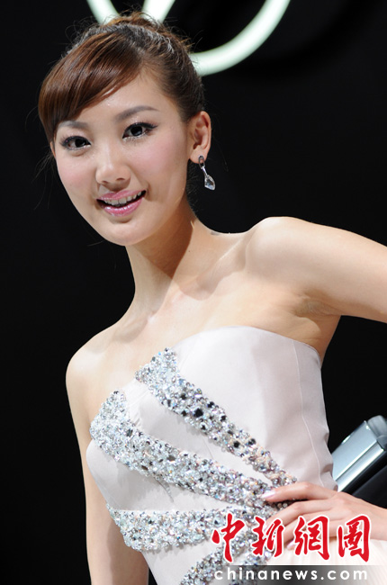 “第十一屆北京國際車展”是名車新品搶先亮相的舞臺,也成了車模們爭奇斗艷的場所,參觀者在車展中可以享受兩道視覺大餐。中新網(wǎng)記者 金碩 攝
