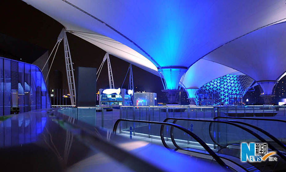 靜待開幕的世博園沉浸在一片暮色中,流光溢彩,給人無(wú)限遐想。從外灘到世博園,“夜”上海不斷延伸,讓人激情跳躍。圖片來(lái)源:新華網(wǎng)孫巍攝