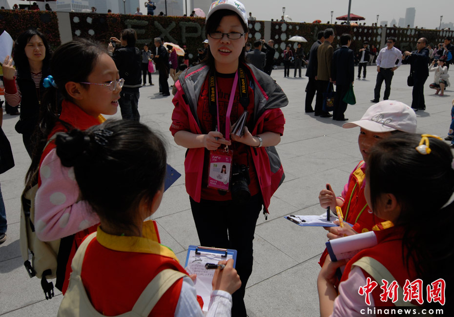 30日上午,記者在上海外灘采訪時遇到小主人報新聞學校的“小記者”們在采訪,成為他們今天的第一個采訪對象。“小記者”們最關(guān)心的問題是關(guān)于世博會,“如何讓世界變得更美好”。她們都表示非常想去看世博會,最想看的是中國館,但是要留到最后看,“因為其它館都會拆掉,中國館會保留下來”!靶∮浾摺眰冋f,自己要從身邊小事做起,做有文明有素質(zhì)的人,并表示希望自己將來成為真正的“大記者”,更好地報道上海。吳歆/文 王紅綱/圖