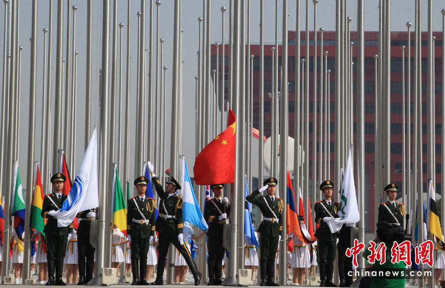 世博會(huì)舉行升旗儀式