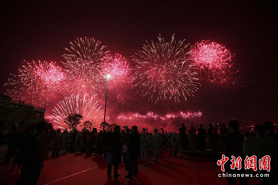 4月30日晚21時(shí)28分,在世博會(huì)焰火燈光表演開始。萬千煙花爭奇斗妍,黃浦江兩岸綿延3.28公里同時(shí)奏響火樹銀花不夜天的華彩世博樂章。圖片來源:中國新聞網(wǎng)