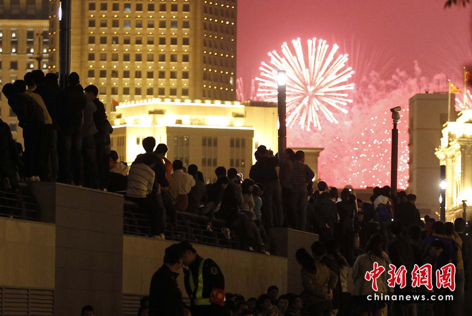 4月30日,上海世博會開幕,黃浦江畔火樹銀花姹紫嫣紅,這座夢想成真城市的千萬居民,在這個注定難忘的夜晚盡情燃燒和釋放著自己的激情。圖為一對情侶在擁擠的外灘合影。中新社發(fā) 盛佳鵬 攝