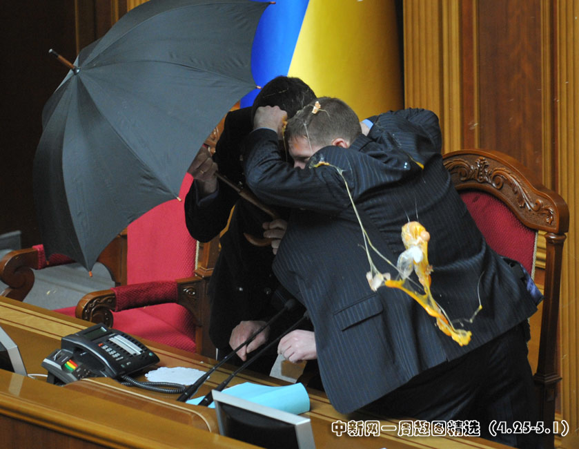 4月27日,基輔,烏克蘭議會(huì)就俄羅斯黑海艦隊(duì)駐扎問題進(jìn)行討論時(shí)出現(xiàn)混亂,數(shù)千人在議會(huì)外示威,會(huì)場內(nèi)有人投擲煙霧彈和雞蛋,大廳內(nèi)煙霧彌漫,場面一度混亂。圖片來源:中國新聞網(wǎng)>>點(diǎn)擊觀看詳細(xì)內(nèi)容