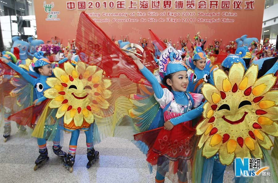 5月1日,中國2010年上海世博會開園儀式在上海世博園世博中心舉行。這是小朋友們在開園儀式上表演。裴鑫攝(新華網)
