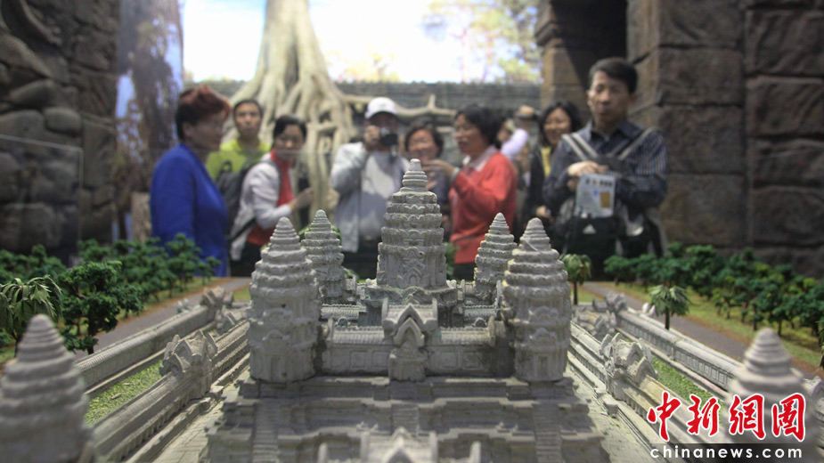 5月1日,觀眾在世博會柬埔寨館內(nèi)觀賞吳哥窟模型。當(dāng)日,上海世博會柬埔寨館開館。中新社發(fā) 蘇丹 攝