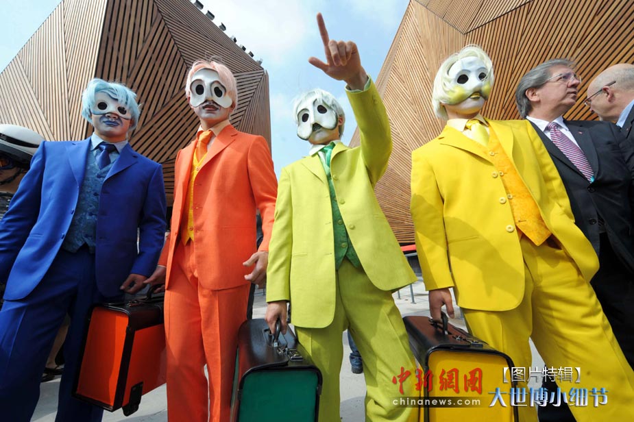 5月1日,上海世博會(huì)正式開(kāi)園,當(dāng)日有20萬(wàn)人次的游客參觀了世博園。世博首日,許許多多的小細(xì)節(jié)都帶給人一種全新的體驗(yàn)。圖為加拿大演藝人員幽默登場(chǎng)。中新社發(fā) 陳文 攝