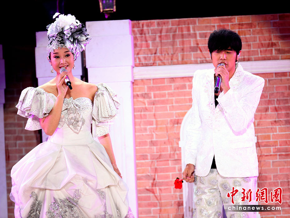 圖為宋祖英、周杰倫同臺(tái)演唱。王保勝 攝