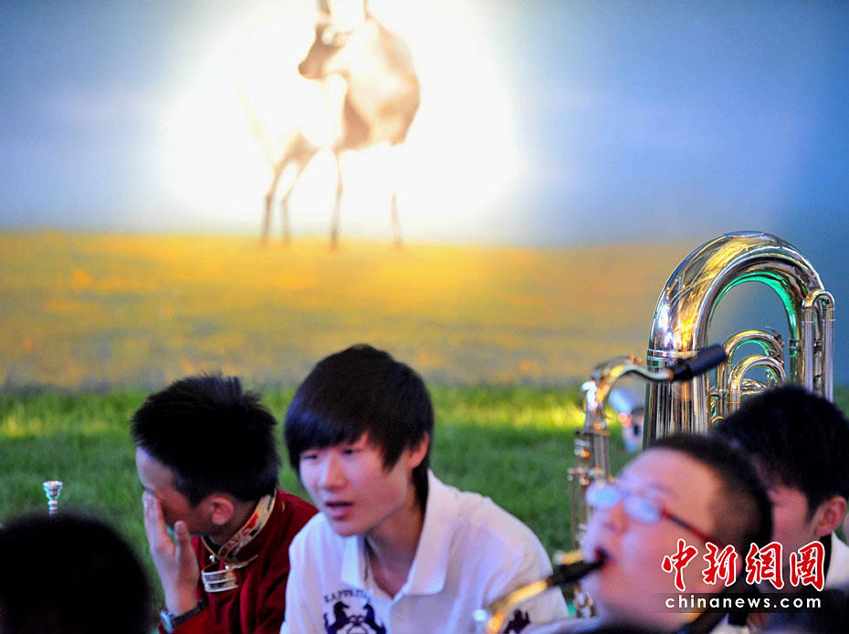 5月2日清晨,來(lái)自玉樹(shù)地震災(zāi)區(qū)結(jié)古鎮(zhèn)的藏族小樂(lè)手巴東珠,含著姐姐在地震中不幸遇難的悲痛心情,與小白楊中學(xué)生管弦樂(lè)團(tuán)來(lái)到上海世博會(huì),為中國(guó)青海館觀眾獻(xiàn)上一曲《在那遙遠(yuǎn)的地方》。他悲歡交融的情懷和演藝,感動(dòng)全場(chǎng)。巴東珠之前還是青海省人民醫(yī)院為地震傷員做藏語(yǔ)翻譯的志愿者。中新社記者 賈國(guó)榮 攝
