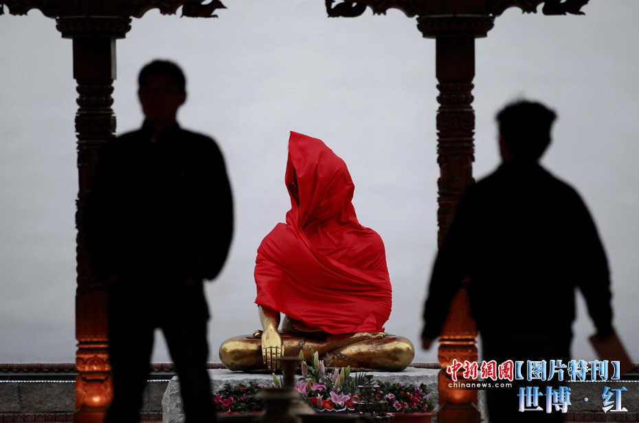 紅色象征著熱量與活力,紅色也象征著興奮與激情,在世博園區(qū)內(nèi)游覽,總會(huì)有一抹濃艷的紅色闖入到記者鏡頭之中,讓世博變得更加火辣。圖為尼泊爾館的佛像。中新社記者 盛佳鵬 攝