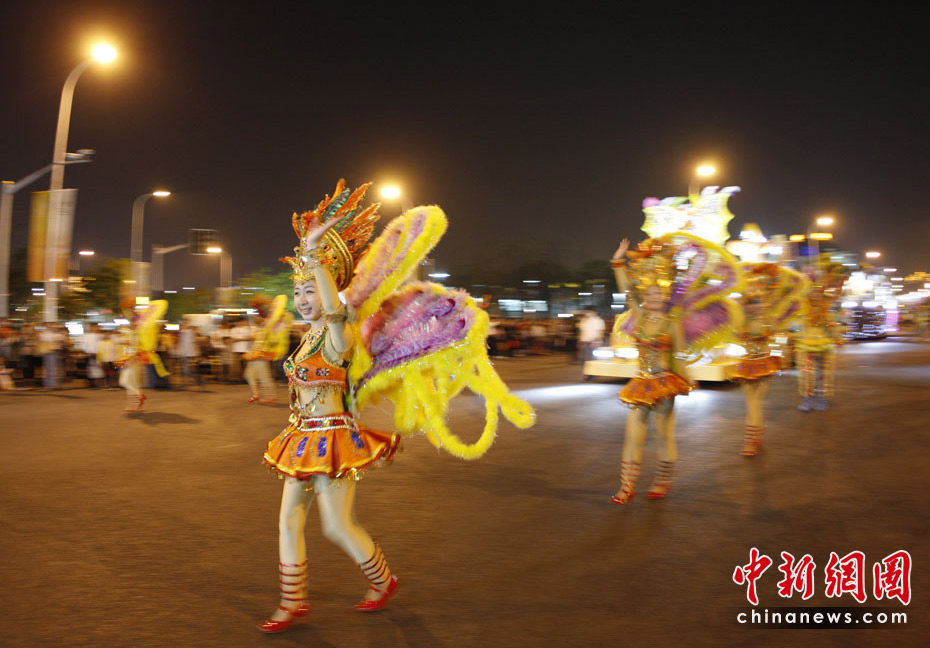 5月2日晚,由一輛輛充滿異域風(fēng)情的花車和身著盛裝的表演者組成的“歡樂盛裝大巡游”在世博園區(qū)舉行。中新網(wǎng)記者 盛佳鵬 攝