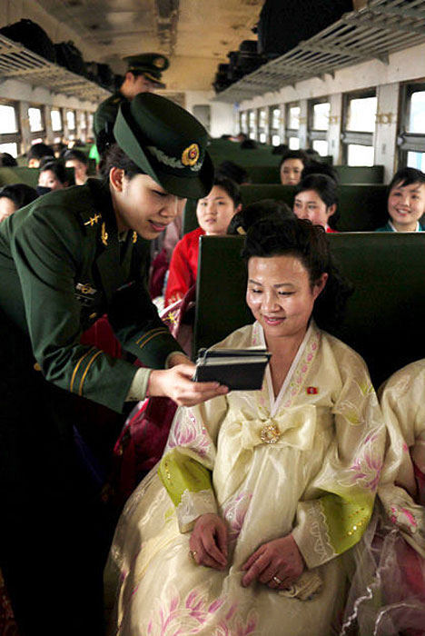 5月2日,載著198名朝鮮紅樓夢劇組演員的專列駛?cè)氲|口岸。由朝鮮國家級藝術(shù)團(tuán)-血海歌劇團(tuán)創(chuàng)作的歌舞劇《紅樓夢》將于5月6日至9日登陸北京電視臺大劇院,這個(gè)超大演員陣容亦創(chuàng)下近年來華國外演出人數(shù)之最。圖片來源:新華網(wǎng)