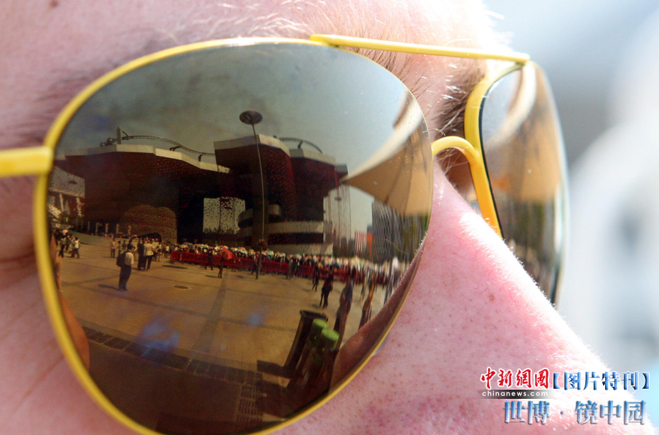 世博園開園3天,天氣一直晴熱,不少游客帶起墨鏡來遮擋刺目的陽光,從鏡片的折射中看世博園,別有一番趣味。中新社記者 湯彥俊攝