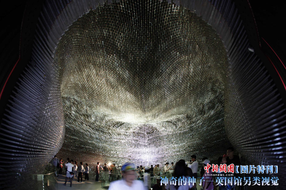 上海世博園開園才數(shù)日,自號(hào)“種子圣殿”的英國館已成人氣最旺場(chǎng)館之一。該館由6萬根亞克力桿巧妙構(gòu)成,隨風(fēng)搖動(dòng),頗為新奇。其每根桿子里都含有植物種子。中新社記者 盛佳鵬 攝