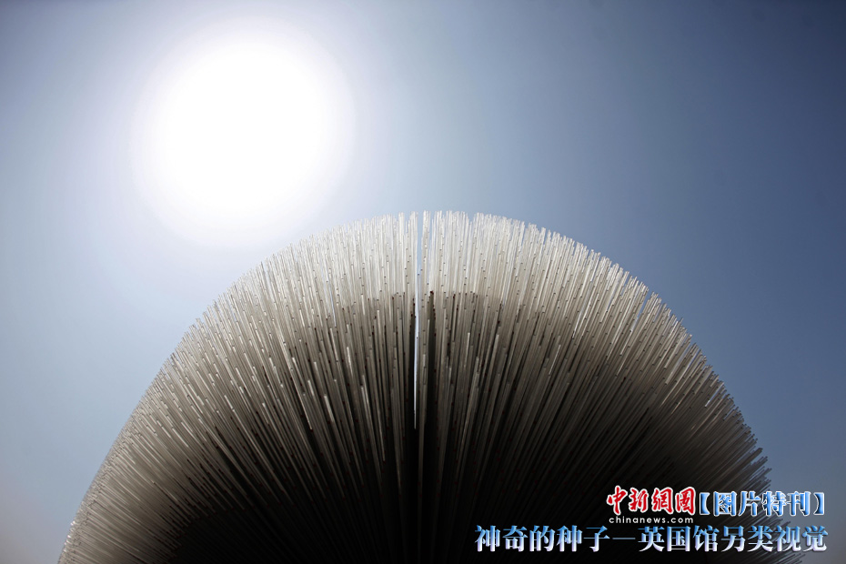 上海世博園開園才數(shù)日,自號(hào)“種子圣殿”的英國(guó)館已成人氣最旺場(chǎng)館之一。該館由6萬根亞克力桿巧妙構(gòu)成,隨風(fēng)搖動(dòng),頗為新奇。其每根桿子里都含有植物種子。中新社記者 盛佳鵬 攝