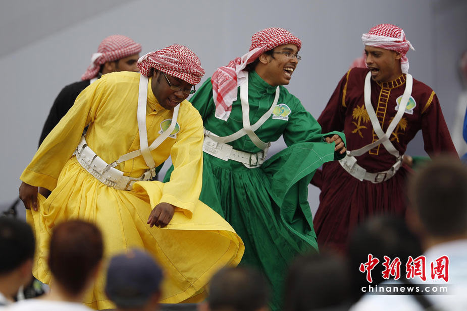 2010年5月4日,上海世博園區(qū)的亞洲廣場,沙特阿拉伯藝術(shù)團(tuán)為游客表演。 中新社發(fā) 盛佳鵬 攝