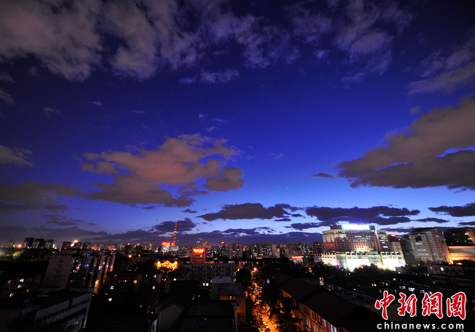 5月5日立夏,京城降雨今晨剛剛結(jié)束,霧氣伺機(jī)又起。傍晚時分,隨著四級北風(fēng)的到來,京城天氣逐漸轉(zhuǎn)晴,霧氣慢慢消散天空彤云密布夜色瑰麗。中新網(wǎng)記者 金碩 攝