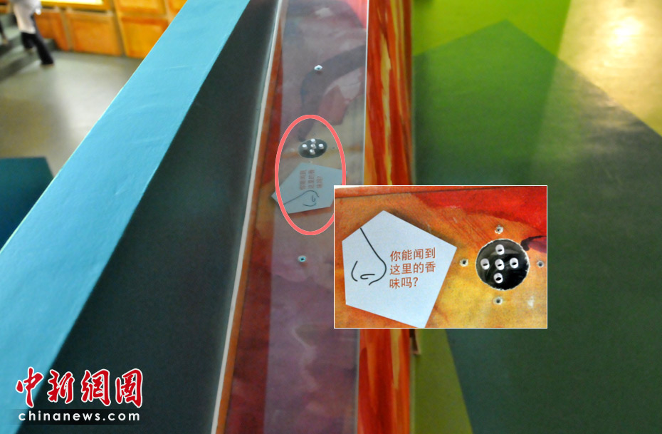 樓梯扶手上也“暗藏玄機”,這些小孔都是有香味發(fā)出的。中新網(wǎng)記者 王紅綱 攝