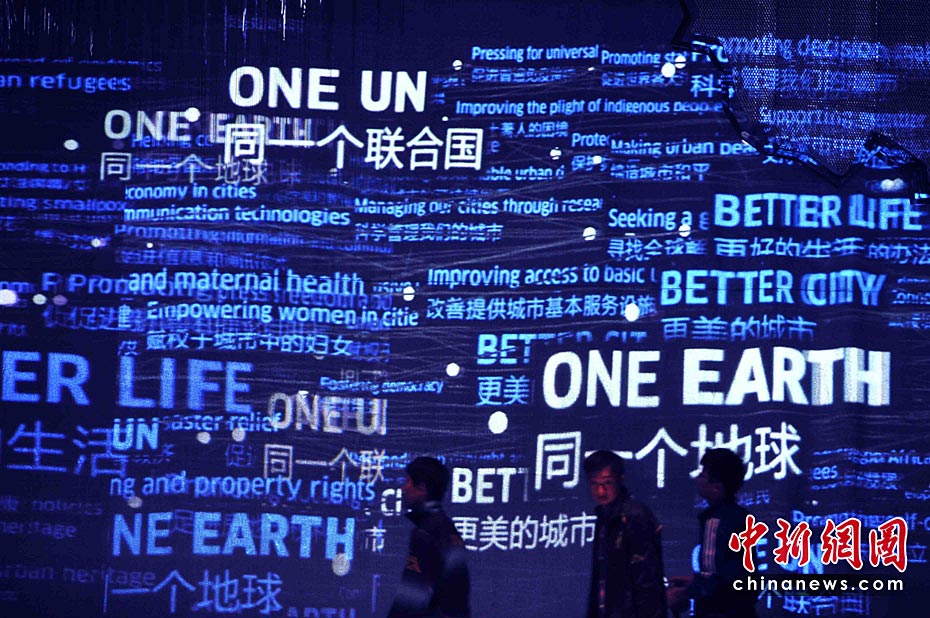 一所藍色的簡樸平房,在5月開園的上海世博會大道邊上,極不顯眼。但是,聯(lián)合國聯(lián)合館的鮮明會標,特別吸引人。這個展館集中了世界衛(wèi)生組織、世界銀行和聯(lián)合國的兒童基金會、糧農(nóng)組織、教科文組織等22個機構。圖片來源:中國新聞網(wǎng) 賈國榮 攝