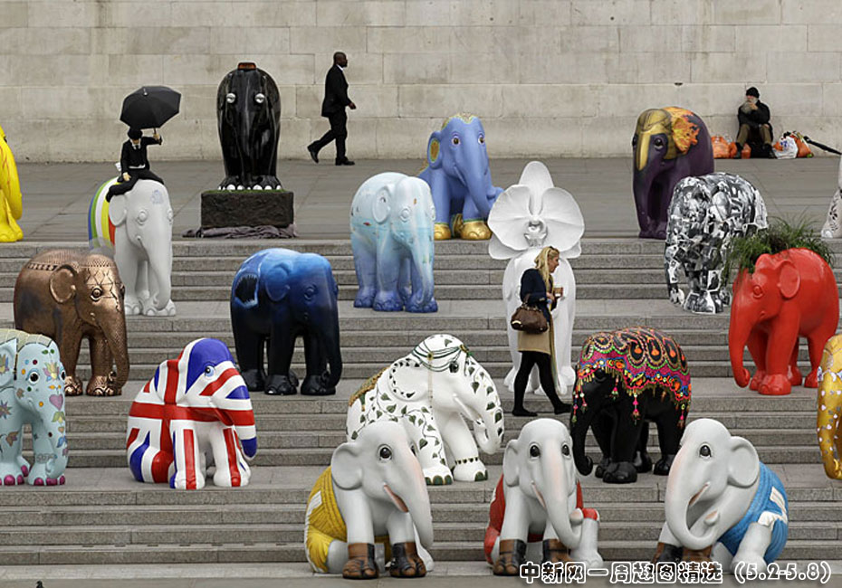 5月4日,2010年倫敦大象游行活動(dòng)當(dāng)日在特拉法爾加廣場(chǎng)啟動(dòng)。260個(gè)真象大小的彩繪雕塑將在倫敦各處展出,并將于6月30日拍賣為慈善組織籌款。圖片來源:中國(guó)新聞網(wǎng)>>點(diǎn)擊觀看詳細(xì)內(nèi)容