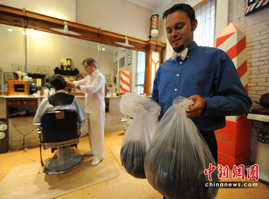 5月8日,為減少墨西哥灣原油泄漏事件給生態(tài)環(huán)境造成的破壞,路易斯安那州目前已經(jīng)在該州境內(nèi)設(shè)置了9處地點(diǎn)來接受社會捐贈的頭發(fā)及皮毛制品等可以扔進(jìn)海里吸收泄漏原油的物品。