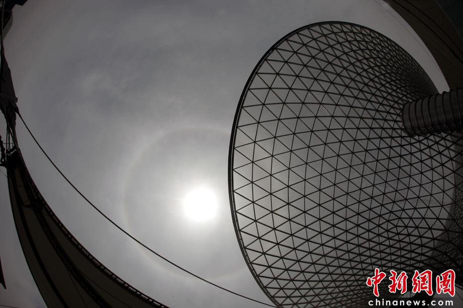 圖為世博軸上空的日暈。中新社記者 盛佳鵬 攝