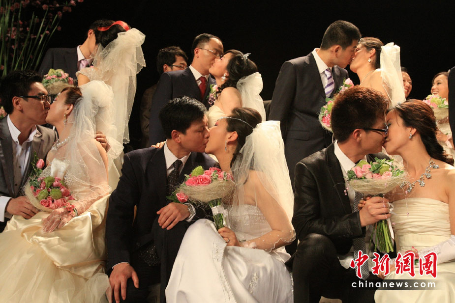 5月11日,35對(duì)新人來到世博法國館內(nèi)舉行婚禮儀式。法國館舉行“法蘭西浪漫婚典”的集體婚禮。中新社發(fā) 潘索菲 攝