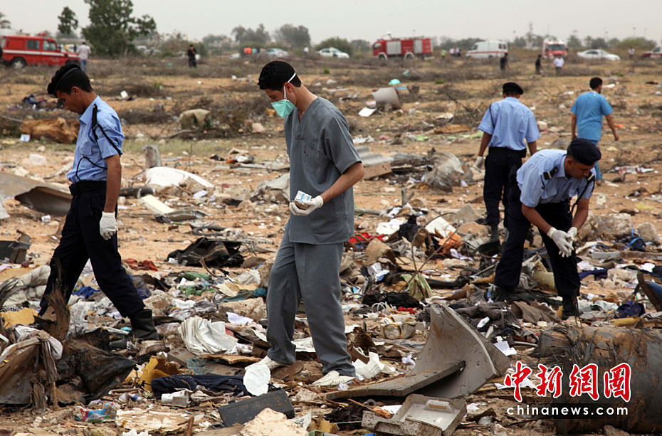 5月12日,一架從南非起飛的利比亞航班在利比亞首都的黎波里機(jī)場墜毀,機(jī)上103名乘客和機(jī)組人員遇難。圖片來源:中國新聞網(wǎng)