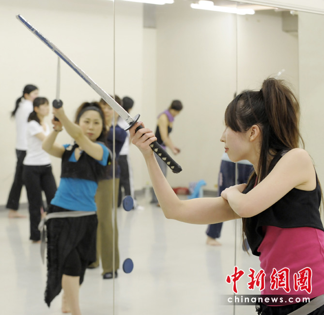 近日,在日本東京,眾多白領(lǐng)女性學(xué)起了日本傳統(tǒng)的武士刀,用來減壓。